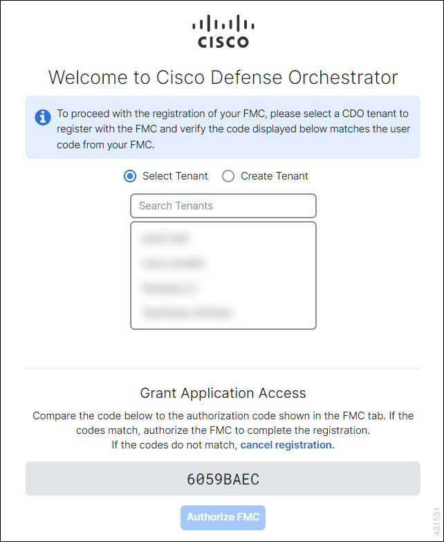 Step 5 | Choose a Security Cloud Control tenant that you want to use for this integration. The on-premises management center and the managed devices get onboarded to the Security Cloud Control tenant that you choose here. If you do not already have a Security Cloud Control tenant or if you want to use a new tenant for this integration, create a new tenant. See Create a Security Cloud Control Tenant for more information. |